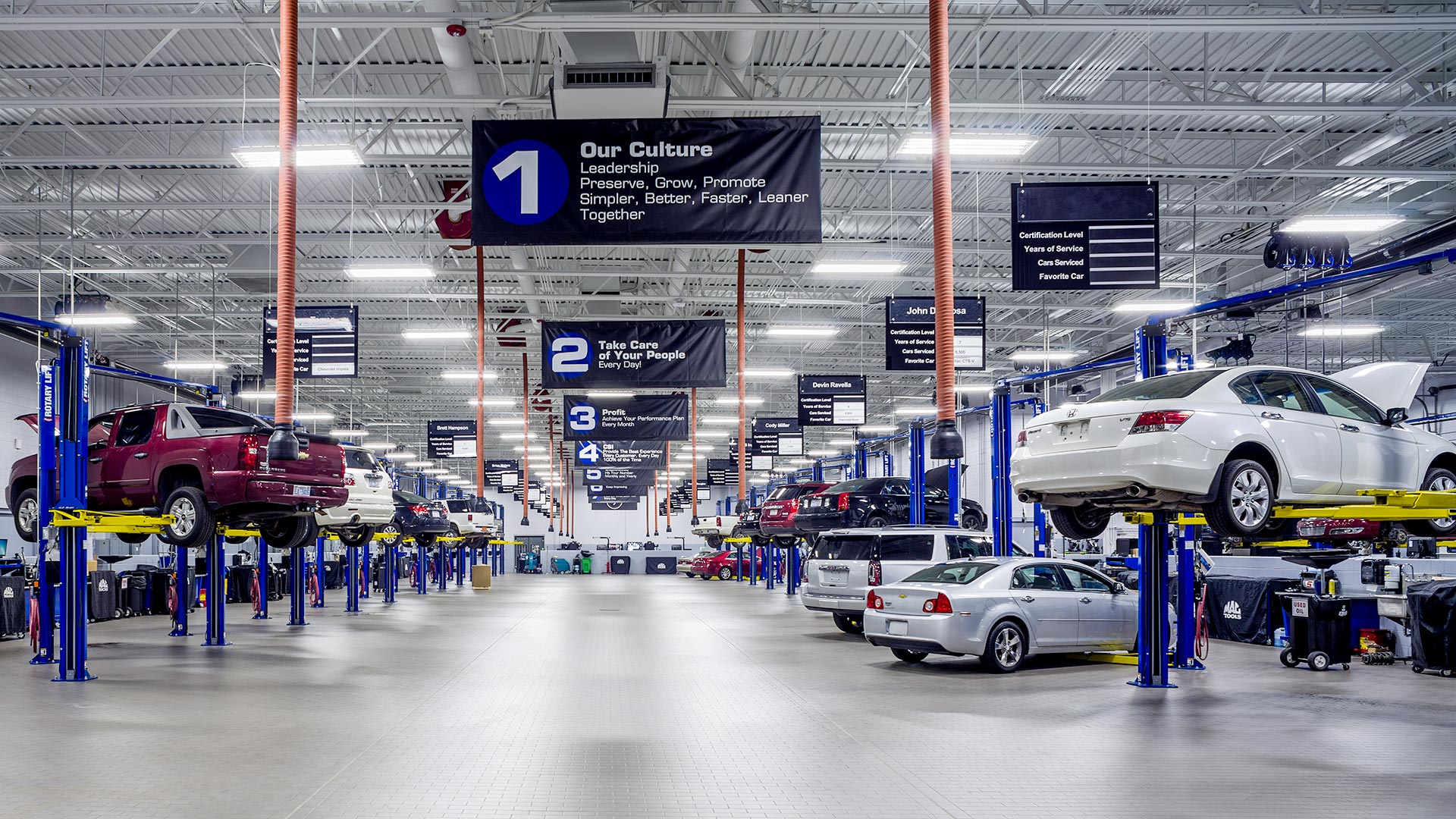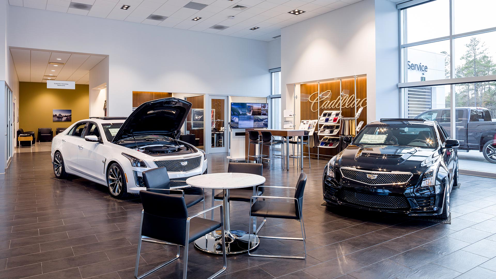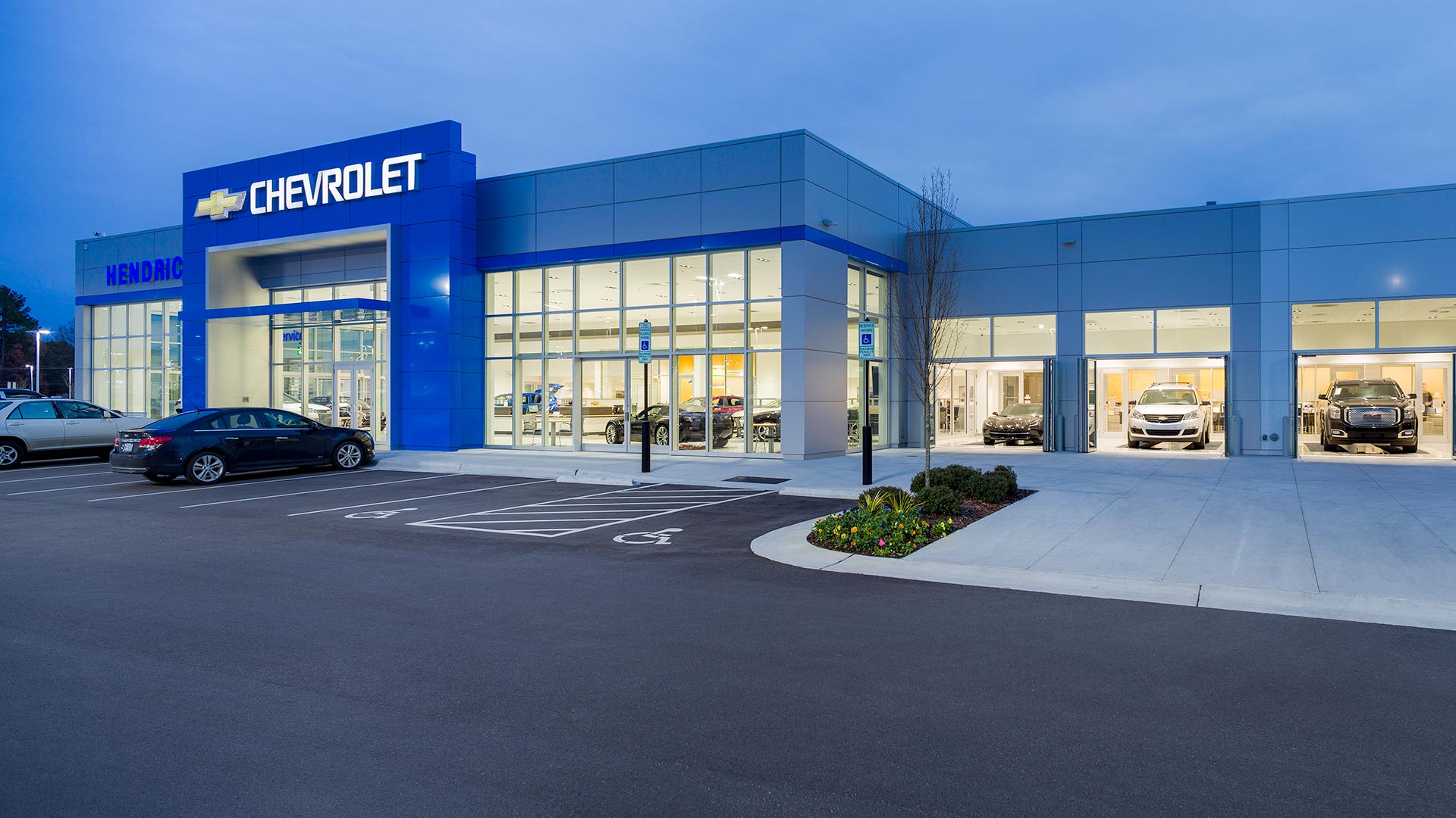 This is the second store to open its doors at Hendrick Automotive Group's Southpoint Automall site. This multi-brand GM dealership brought to the Durham area a one stop shop for car buyers. The challenge of housing multiple brands under one roof turned out to be what made the dealership stand out from all others. The Chevrolet blue entrance portal in contrast to the Buick GMC and Cadillac entrances create a visual puzzle that comes together seamlessly. All of the brands share a common service department (with 31 service bays, 4 PDI bays, 6,500 sq. ft. of parts and core spaces), while each sales and service reception areas are representative of the individual brands.