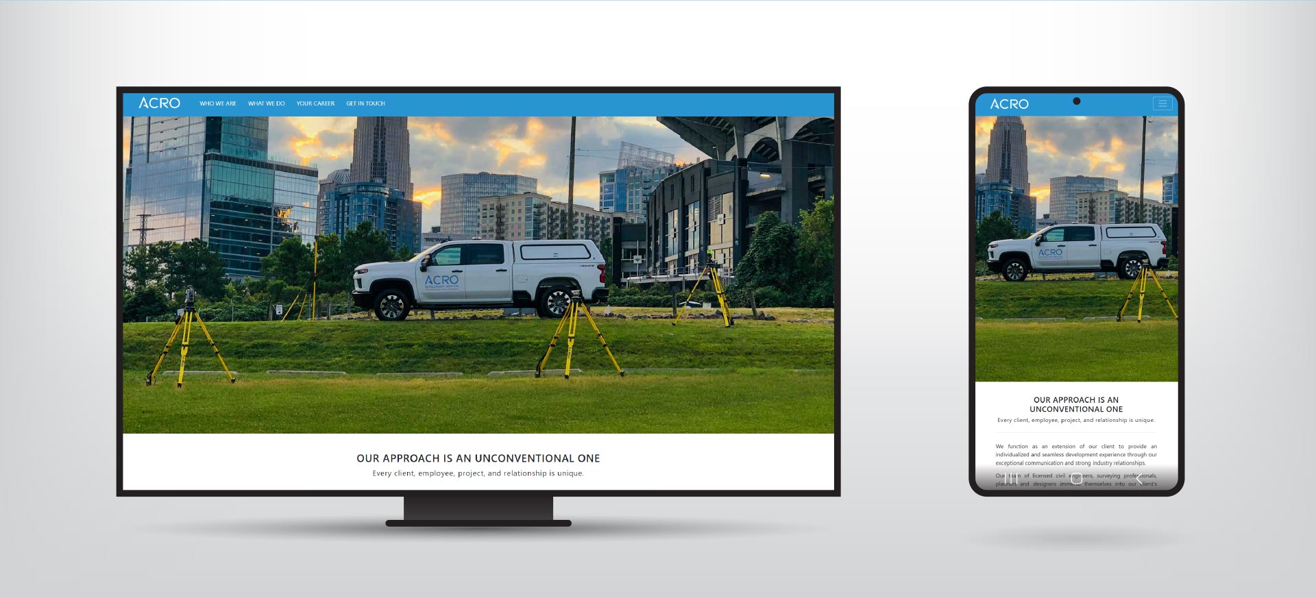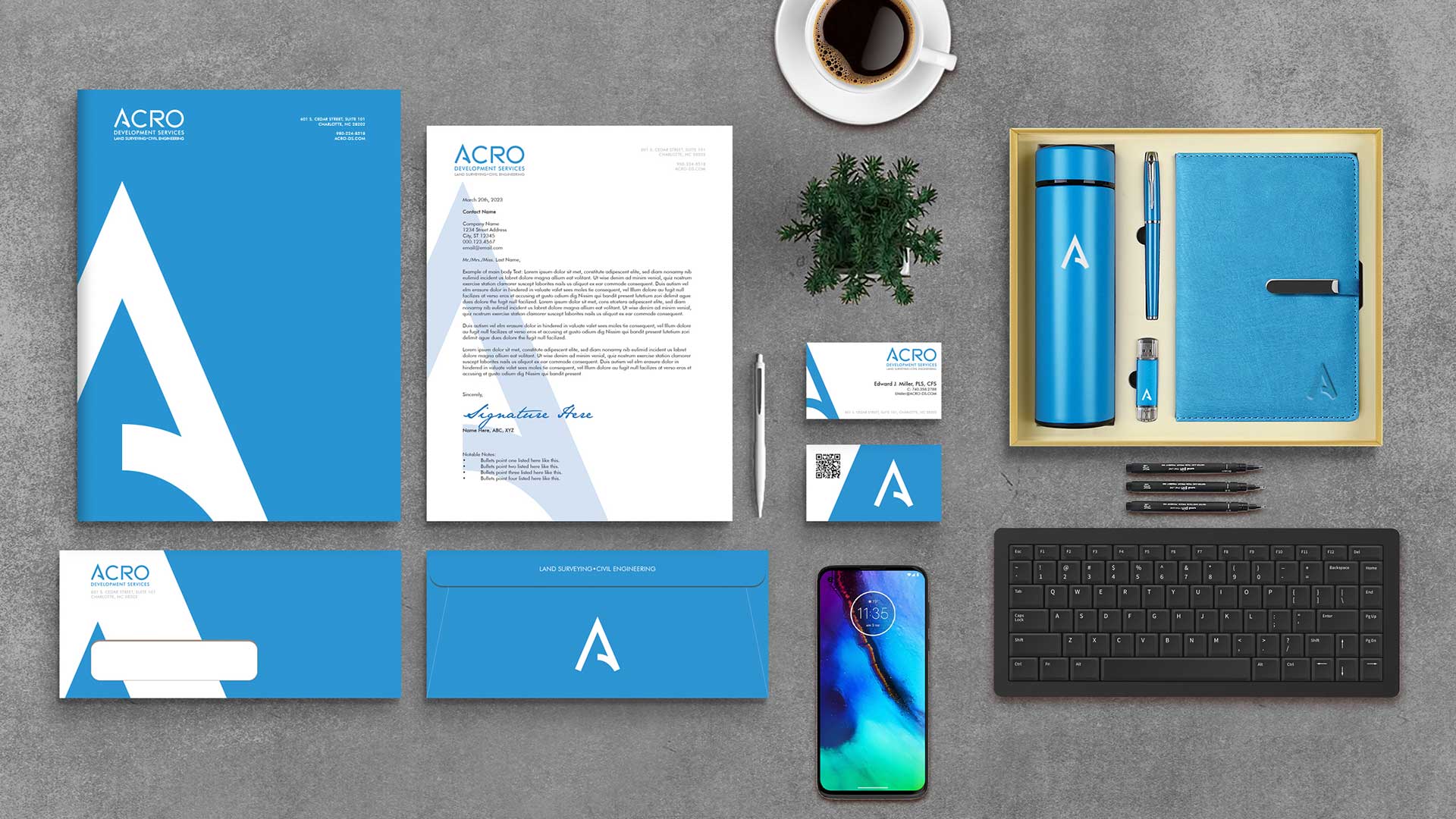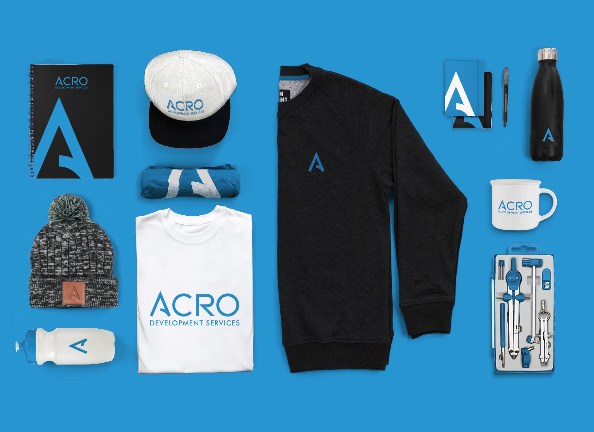 ACRO Development Services is a team of licensed civil engineers, surveying professionals, planners and designers. As a longtime partner with Redline, ACRO sought to utilize our in-house design department to help them develop their re-brand. We chose to showcase the precision and accuracy within civil engineering by using an abstract drafting compass as their icon that also doubles as the "A" in ACRO. Also, the term ACRO derives from the Greek meaning peak, edge or tip. We implemented this through the sharp edges and clean design of the icon and sans-serif font. Included in their brand package was logo design and application, stationery design, brand standards, swag & promotional materials and website design.