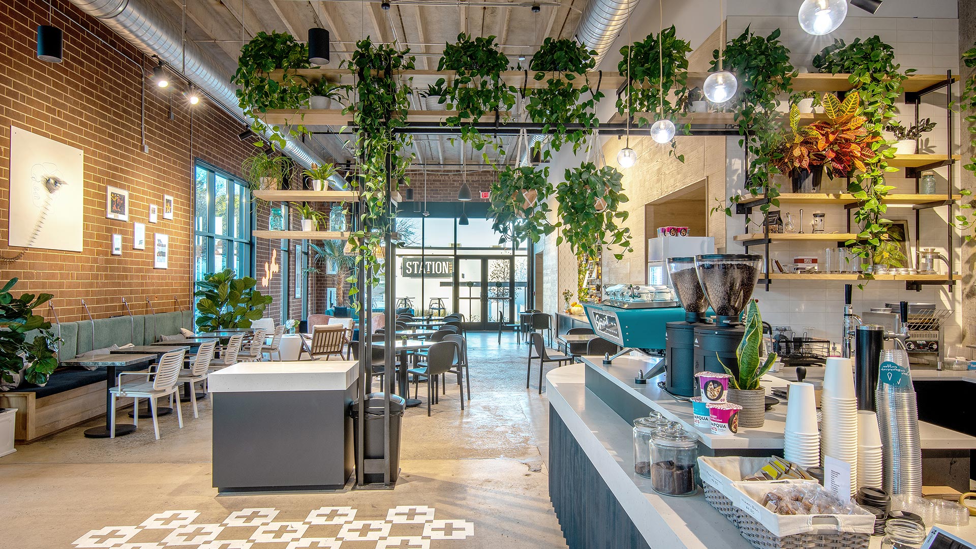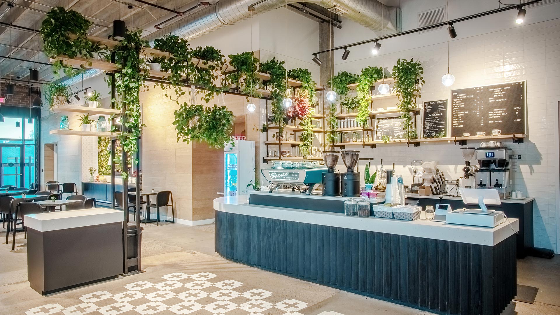 Haerfest Coffee Roasting Co. reached out to Redline wanting to develop a new coffee shop that could highlight elements of their creative roasting process. They wanted to showcase the pairing of visuals with different coffee flavors, utilizing multiple senses to create a unique interactive experience. With Backdrop Coffee being an extension of Haerfest, they wanted their roasters to get a face to face interaction with the end users and the customers to get a front row seat to the coffee process from bean to cup. The cupping lab facilitates this experience and bridges the two spaces together. Custom industrial shelving separates the point of sale and the seating area. This helps to provide a more intimate setting throughout the linear footprint. An industrial concrete structure was the perfect foundation for the owner’s Airstream inspired design.