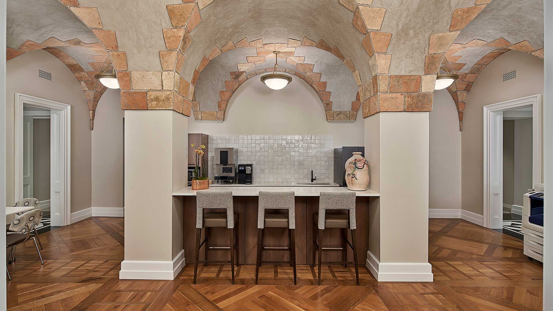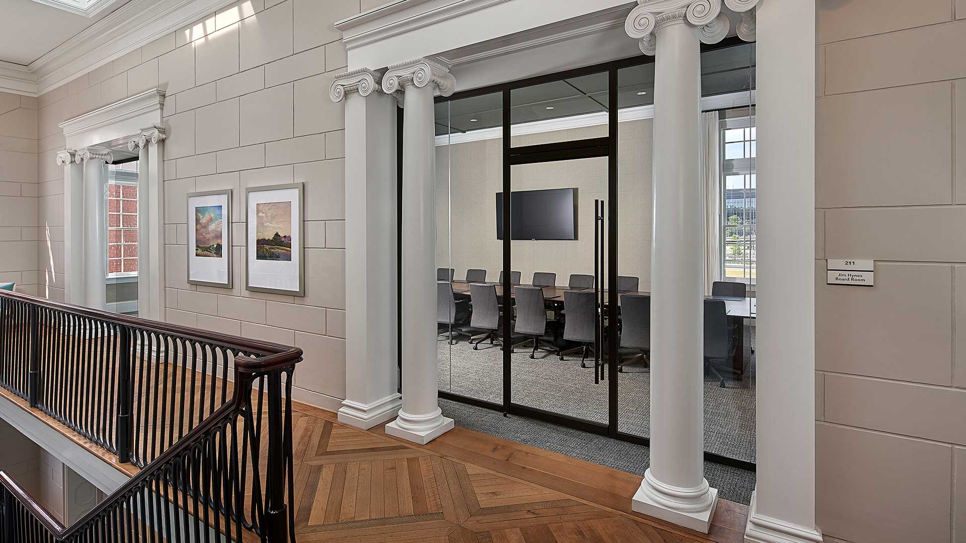 Atrium Health Foundation serves as the point of contact for all the charitable contributions to Atrium Health in the Charlotte area. When the Foundation was looking to relocate their offices closer to the Pearl Innovation district near Uptown Charlotte, they acquired the former Charlotte Women’s Club and partnered with Redline to convert it to suit their needs. Built in 1924 by the locally renowned architect Charles C. Hook, the property is a designated historic landmark due to the civic importance of the clubhouse to the city. Harkening back to the building’s original purpose, the Foundation will host fundraising events in their new space, including seated dinners, cocktail hours, and garden parties. A large 30-person boardroom was also created to be used by the Atrium Health executives, in addition to the Foundation’s offices on the lower level. The design team was challenged to maintain the historical character of the exterior while updating to improve accessibility throughout the building with new ramps and an elevator. On the interior, each room has its own distinct features that were highlighted by the new materials. The project is now an excellent example of how a historic building can be adapted for modern times.